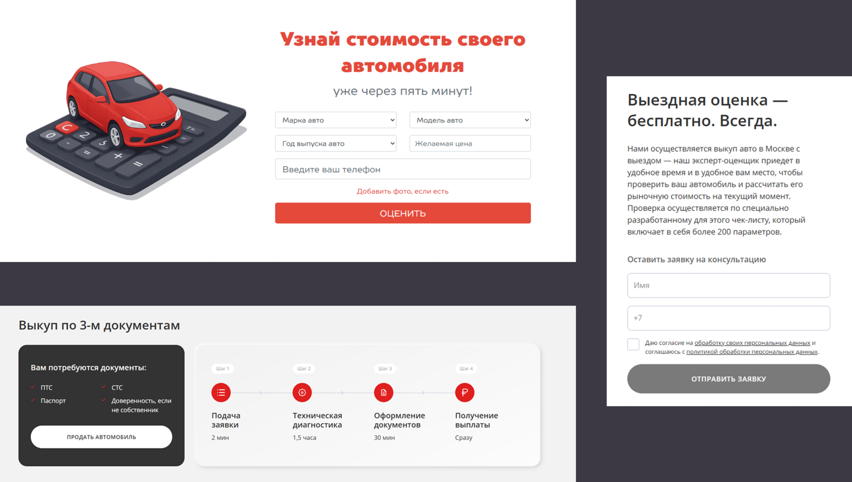Пример: компания по срочному выкупу авто. Заявки шли, но мало и почти все звонили с одним вопросом: «А сколько вы дадите за мою машину?». На сайте была одна кнопка: «Оставить заявку на выкуп»
